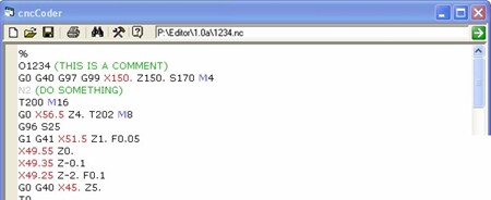 When you enable syntax highlighting cncCoder switches the display color instantly but this highlighting is only visual – it only affects the display on the computer. It does not change the actual cnc text in any way so does not interfere with the machining process.