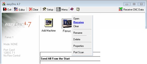 To receive data from the CNC you need to put easyDnc into ‘receive’ mode.